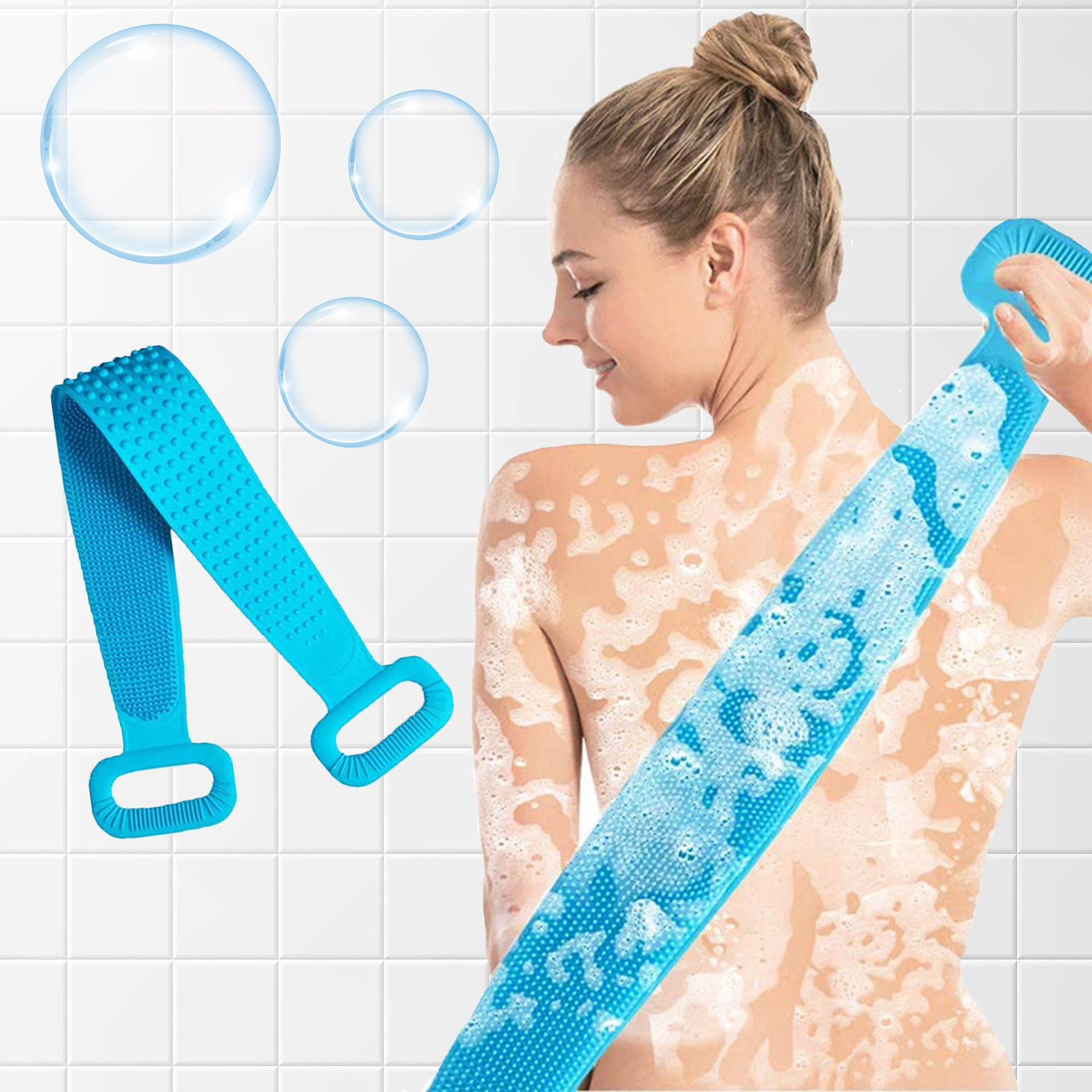 Lengthened design, soft brush, Comfortable massage for dry brushing or shower use: The silicone bristles on this bath brush are soft enough to feel nice on your skin while giving you a gentle massage.The double-sided lines body scrubbers with bump design can effectively bring you a cleaning effect. Silicone brush are dry, greatly reducing bacterial survival.